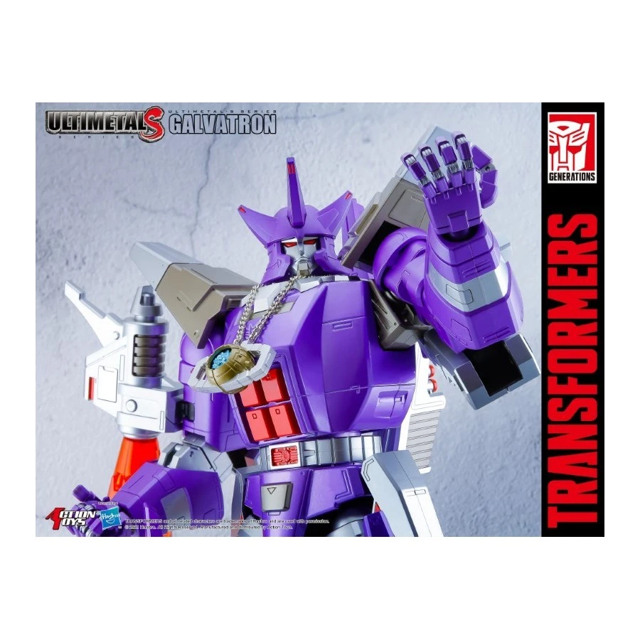 Galvatron tratto da Transformers entra nella line-up Action Toys UltimetalS, azione completa, realizzato in ABS, PVC e metallo die-cast é alto 30cm. Viene fornito con armi e collana Matrice del Potere